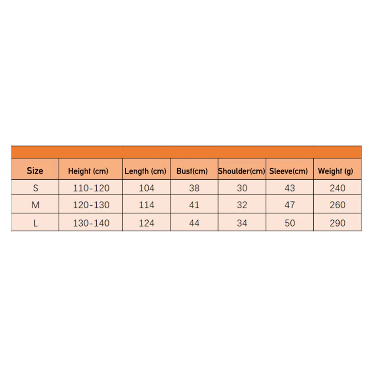 [Size]There are three sizes of costume, please check the size chart before purchasing: S size: 100-120cm; M size: 120-130cm; L size: 130-140cm.