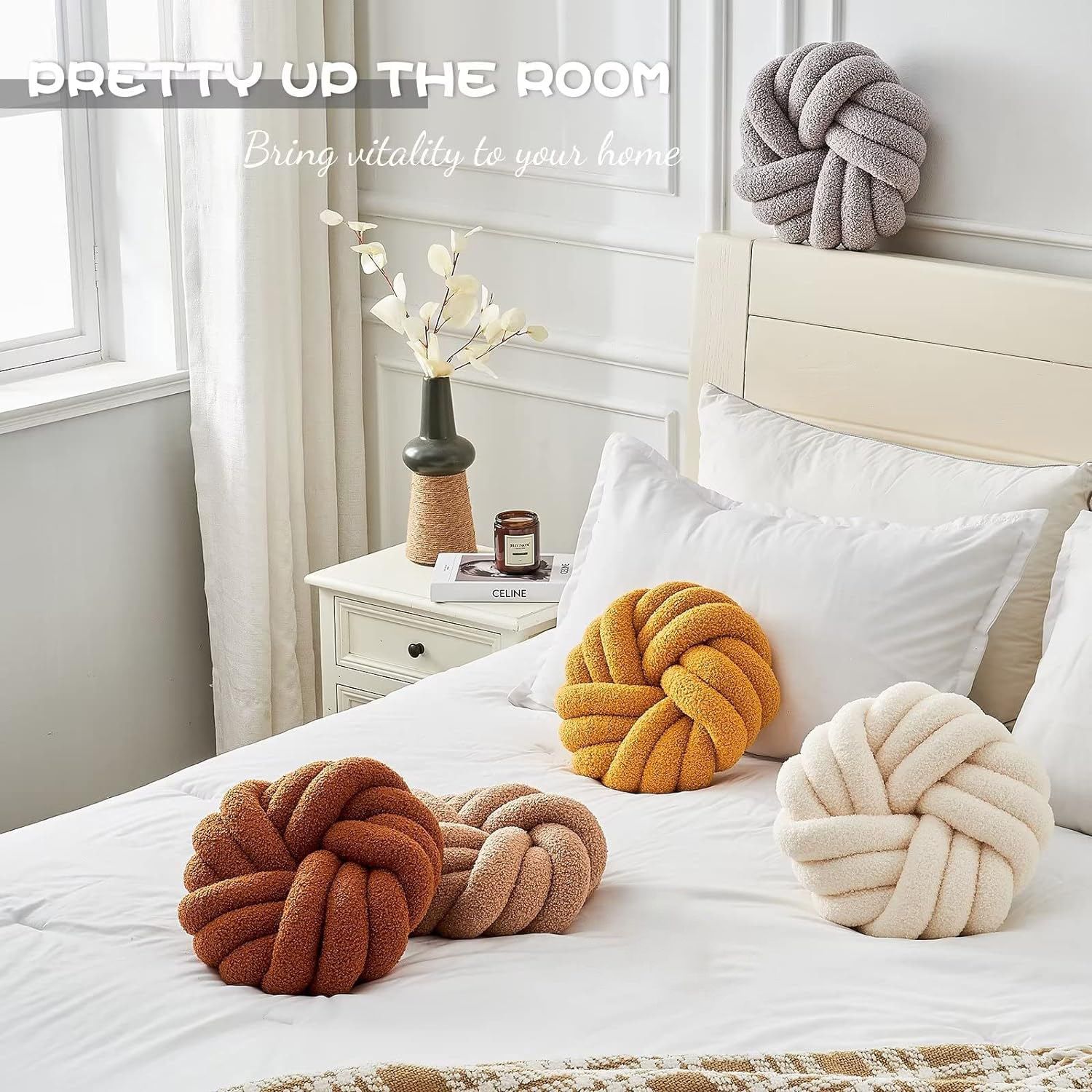 2.Material: Sioloc round ball pillow is made of soft plush fabric filled with PP cotton so as to offer you and your family comfortable feeling every single time you hold this plush knot ball pillow in your arms,each cushion is hand sewn, stuffed and knotted with quality and kids safe materials.