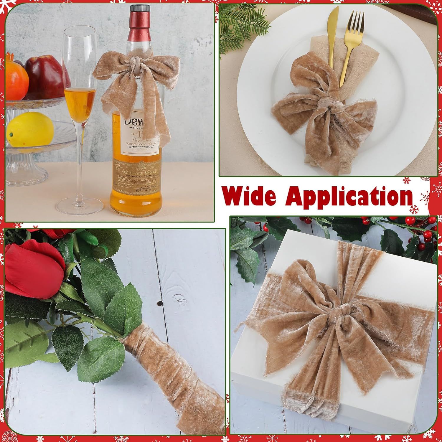 4.VARIOUS USAGE: Great for crafts, bridal bouquets, wedding decor, wedding invitations, vows, gift boxes, christmas decorations, DIY velvet choker necklace and hair bows, sashes etc.