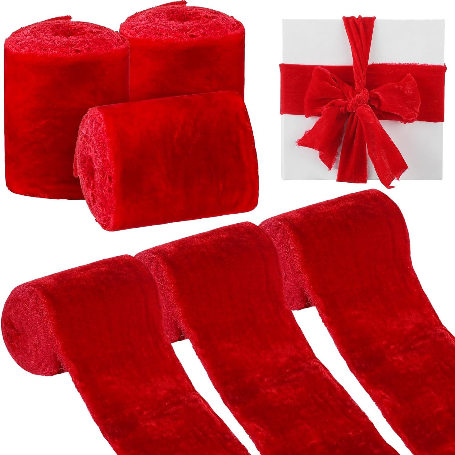 3.HANDMADE CRAFTS: Each step of this velvet ribbon is completed by hand, including dyeing, tearing into ribbons and fraying. Wrap your gift with this ribbon will make it seem more meaningful and full of love.
